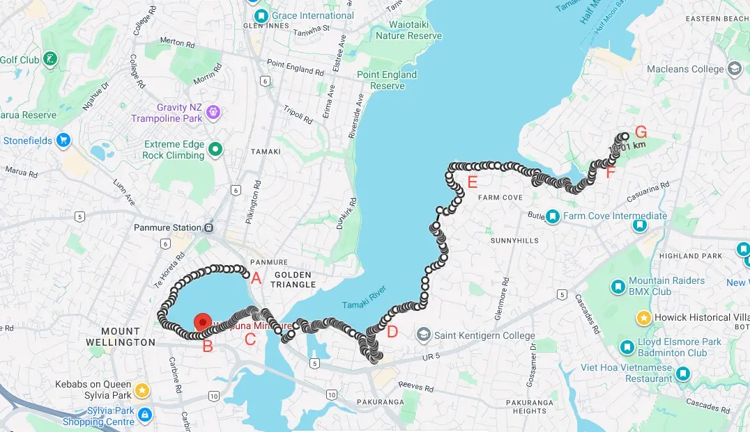 - Starting Point: (A) Panmure Statepark